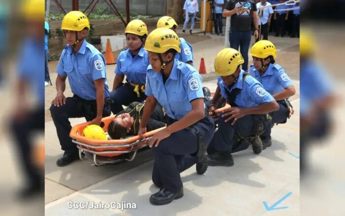 Con cuerdas, a una altura de 7 metros, 12 bomberos de primer ingreso del cuarto…