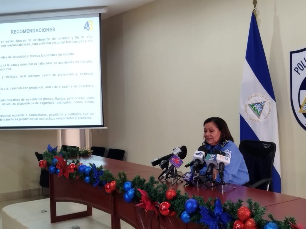 Del 12 al 18 de diciembre se registraron 786 colisiones, 15 personas fallecidas y 26 lesionadas, así lo informó este martes la comisionada general, Vilma Reyes, Jefa de Tránsito Nacional.