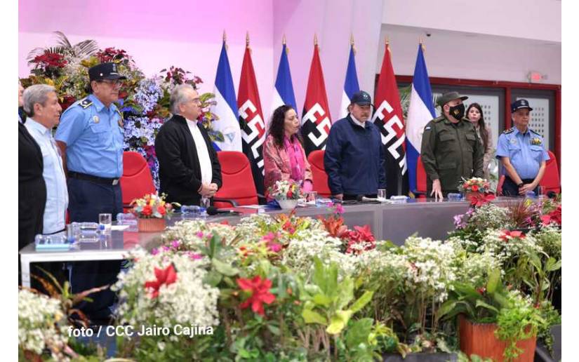 Compañera Rosario, Compañero Gustavo Porras, General Julio César Avilés, General Marvin Corrales, General Francisco Díaz, Comisionado General Horacio Rocha, Compañera María Amelia Coronel, Compañera Reyna Rueda, bueno, somos un solo cuerpo, para defender la Paz, para defender la Seguridad, para defender el Trabajo, para defender el Bienestar y el Progreso de nuestro País, de nuestro Pueblo; y somos un solo cuerpo también para enfrentar los fenómenos agresivos de la Naturaleza. Aquí han habido huracanes, terremotos, han habido también inundaciones por las lluvias, derrames de lava de volcanes, etc.