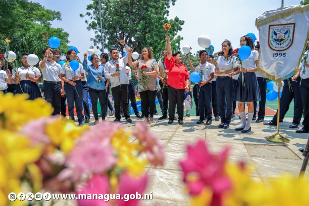 Autoridades de la Alcaldía de Managua y estudiantes del Instituto Técnico José Dolores Estrada Vado conmemoraron 45 aniversario del paso a la inmortalidad del niño mártir Luis Alfonso Velásquez Flores.