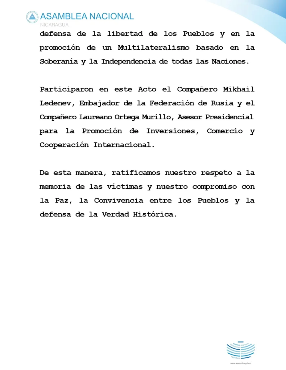 De esta manera, ratificamos nuestro respeto a la memoria de las víctimas y nuestro compromiso con la Paz, la Convivencia entre los Pueblos y la defensa de la Verdad Histórica.