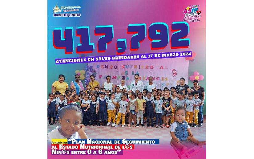 En cumplimiento a las actividades del Plan Nacional de “Seguimiento al Estado Nutricional de l@s Niñ@s entre 0 a 6 años”, al 17 de marzo 2024, hemos brindado 417,792 acciones, detalladas a continuación: