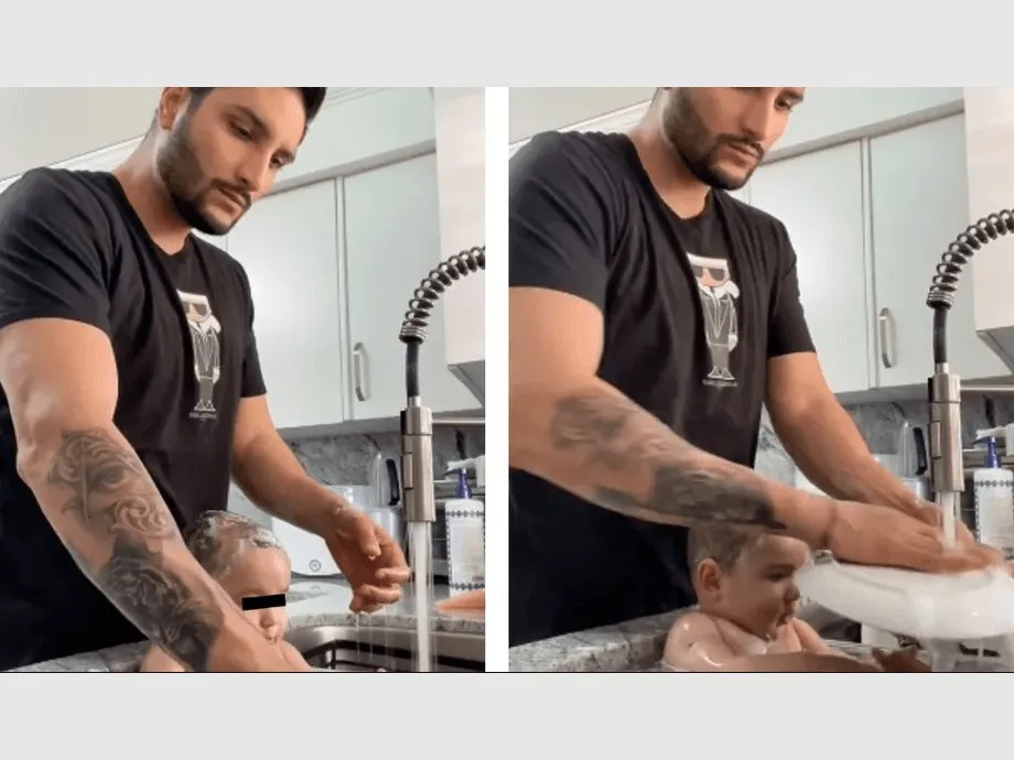 Martín Espinoza decidió bañar a su bebé en el mismo lavadero en donde lavó sus platos; lo mostró en las redes sociales y generó debate.
