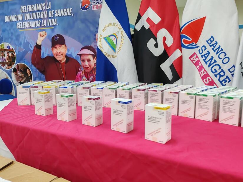 El Banco de Sangre ha recibido de la Federación Mundial de Hemofilia, donación consistente en 1,791 frascos de factor 8 y factor 9, que nos permitirán continuar fortaleciendo el tratamiento a las personas que tienen problemas de trastornos en la coagulación.