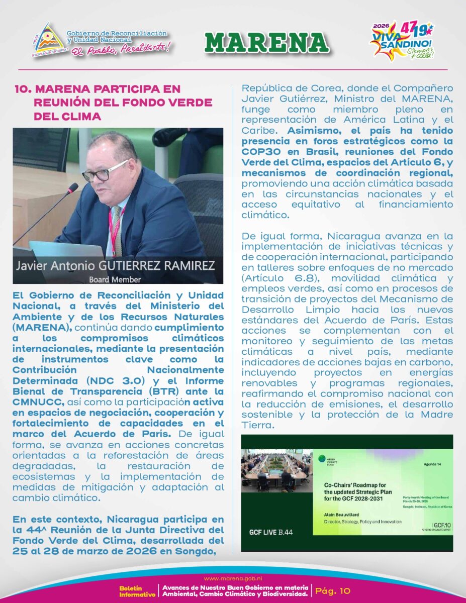 Boletín Informativo Ambiental del MARENA, correspondiente al Primer Trimestre 2026