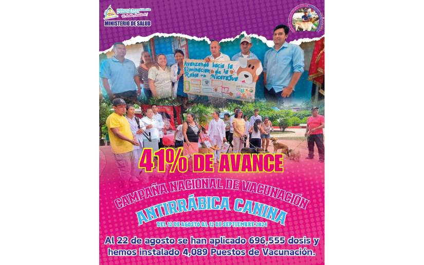 El MINSA junto a las Familias nicaragüenses y la Red Comunitaria, estamos desarrollando la Campaña Nacional de Vacunación Antirrábica Canina con el objetivo de aplicar 1,700,000 dosis en perros.