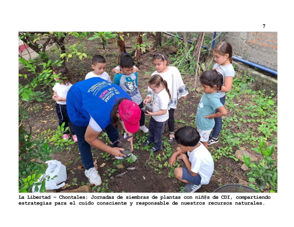 Durante las actividades, niñ@s sembraron plantas frutales y ornamentales, acompañados por educadoras, madres, padres y promotores comunitarios, aprendiendo sobre la importancia de cuidar el agua, la tierra y la naturaleza como fuente de vida.