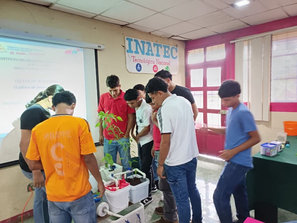 En el marco de la jornada Octubre Victorioso, el Gobierno de Reconciliación y Unidad Nacional a través del INPESCA y en coordinación con el INATEC, UNAN–León y Universidad Centroamericana de Ciencias Empresariales (UCEM), impartió talleres de construcción de sistemas acuapónicos a 120 estudiantes y docentes de las carreras técnicas de: Veterinaria, Acuicultura, Agropecuaria y Agronomía.