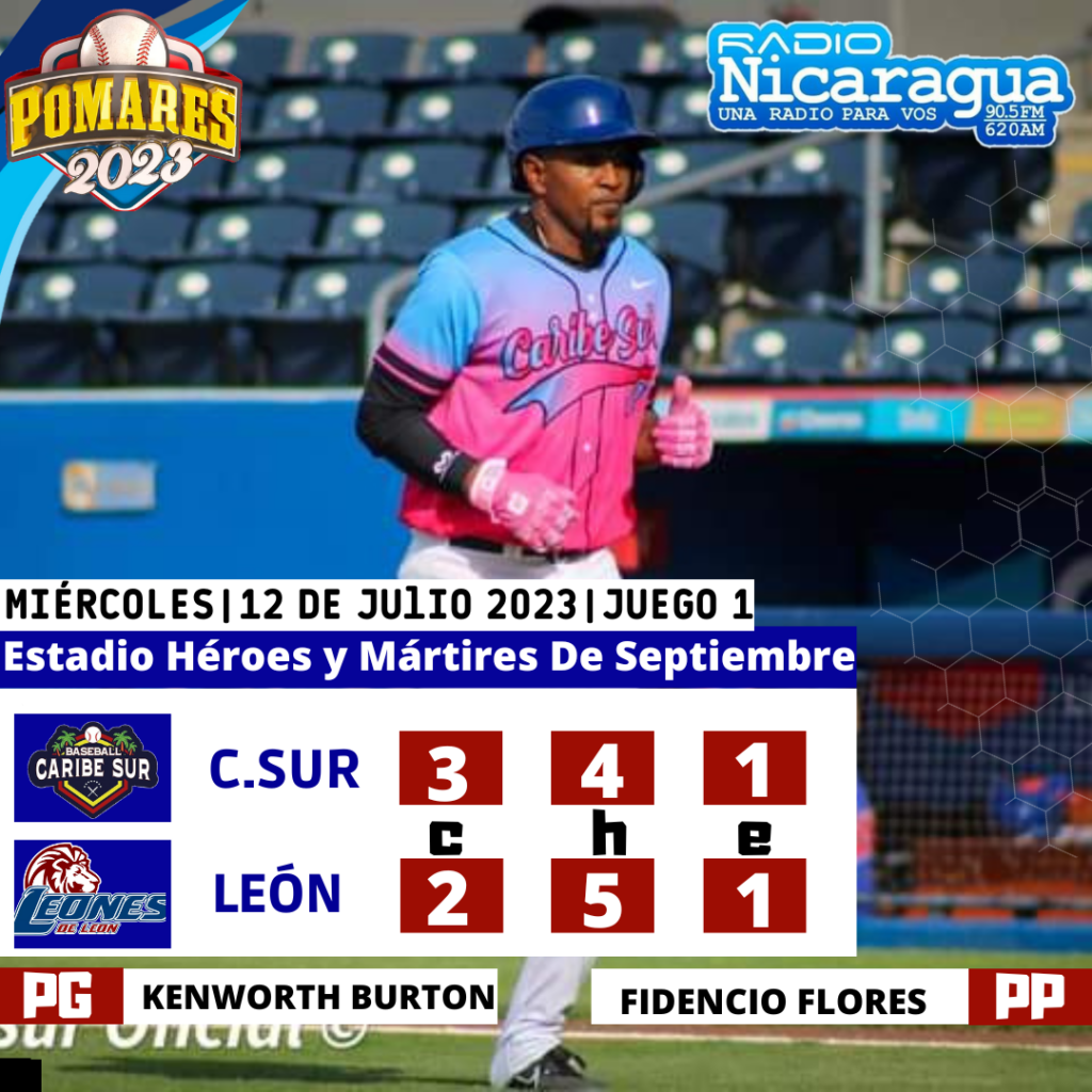 El Caribe Sur llegó a imponer su autoridad ayer en el Estadio Héroes y Mártires de Septiembre, donde espantó los fantasmas de la eliminación, al derrotar 3×2 a los Leones de León para lograr su boleto a la segunda ronda del Campeonato Germán Pomares Ordóñez.