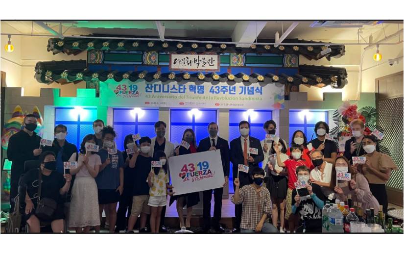 Ayer Martes 12 de Julio 2022, la Embajada de Nicaragua en Corea, celebró junto a representantes de grupos Solidarios, Diplomáticos, Catedráticos y Amigos de la Embajada de Nicaragua, el 43 Aniversario del Triunfo de la Revolución Popular Sandinista, en un ambiente lleno de Alegría y Solidaridad, en donde se expusieron infografías sobre los logros de nuestro Buen Gobierno y la Historia y Legado de la Revolución Sandinista.