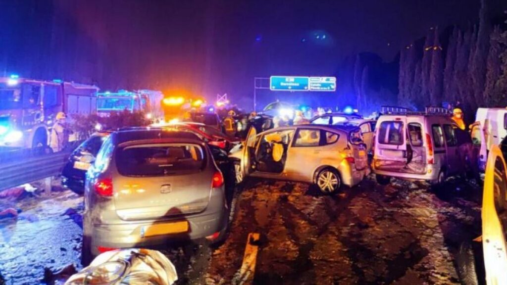 El accidente fue ocasionado por el hielo en la carretera y la poca visibilidad derivada de las condiciones meteorológicas. Varios camiones pesados, colisionaros y volcaron, recogen medios locales.