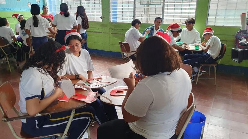 “Nos estamos preparando para recibir la Navidad, donde desarrollamos diversas dinámicas, mientras otros elaboran guirnaldas y las tradicionales botas de color rojo”, expresó el subdirector del centro escolar San Sebastián, profesor Walter José García.