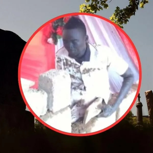 Se trató de un albañil que al morir fue velado por sus familiares posando junto a un muro. El cadáver parecía que estaba pegando ladrillos como si se tratara de una jornada laboral.