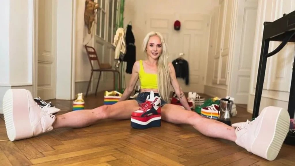 Theresia Fischer, es una modelo alemana de 31 años, y ha gastado más de 150 mil euros para alargar sus piernas, para lo cual los cirujanos le insertaron unas varillas telescópicas ajustables en sus espinillas y ha crecido 14 centímetros.
