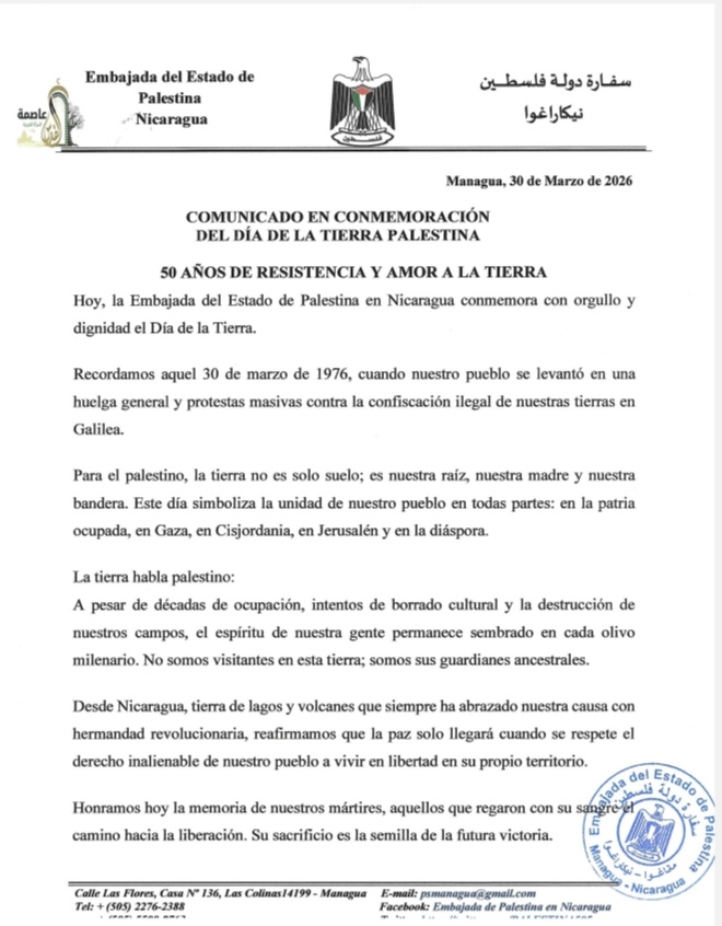 Comunicado en conmemoración del Día de la Tierra Palestina