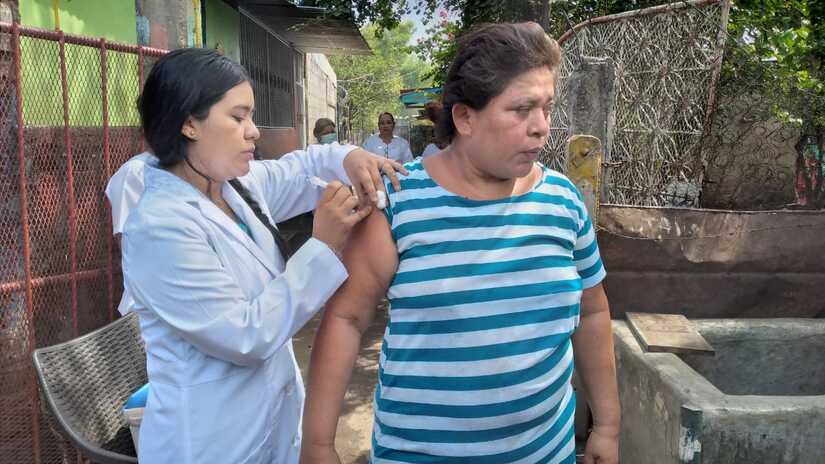 Brigadistas del Ministerio de Salud realizaron jornada de vacunación casa a casa contra la Covid-19 en el barrio Noel Morales, ubicado en el municipio de Tipitapa.