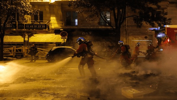 En la ciudad de Lyon, ocurrió un incendio frente al edificio de la Policía municipal y en Rennes, frente a una sucursal bancaria; mientras en Marsella se demandó la renuncia del presidente.
