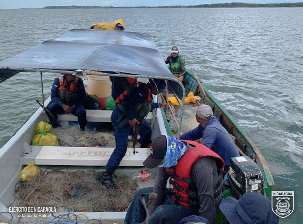 El Ejército de Nicaragua consecuente con el lema de que “Somos el Pueblo mismo uniformado trabajando en su propio beneficio”, del 25 al 29 de noviembre de 2025, a través del Destacamento Naval de Aguas Interiores “Comandante Hilario Sánchez Vásquez”, brindó acompañamiento a funcionarios del Instituto Nicaragüense de la Pesca y Acuicultura (INPESCA), con el objetivo realizar control e inspección a embarcaciones y aperos de pesca artesanal en los puertos y costas del municipio de San Carlos y en el archipiélago de Solentiname, departamento de Río San Juan.