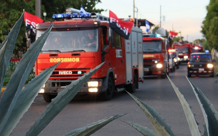 El Cuerpo de Bomberos Unificados de Nicaragua realizó una diana en celebración al Día de la Alegría, la que recorrió las principales calles de Managua.