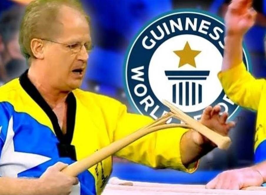 El artista marcial alemán Muhamed Kahrimanovic, quien tiene el apodo de “Manos de martillo” batió el récord mundial Guinness al utilizar sus manos para romper 68 bates de béisbol en un minuto.