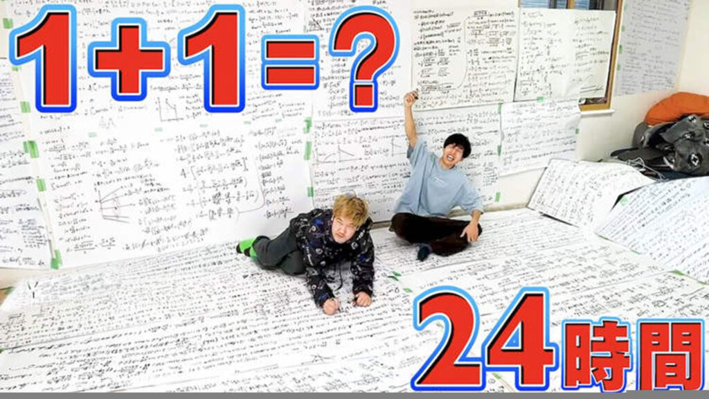 Un par de japoneses amantes de las matemáticas pasaron 24 horas cubriendo las paredes de una habitación entera con cálculos en un intento de encontrar la respuesta definitiva a la fórmula “1+1”