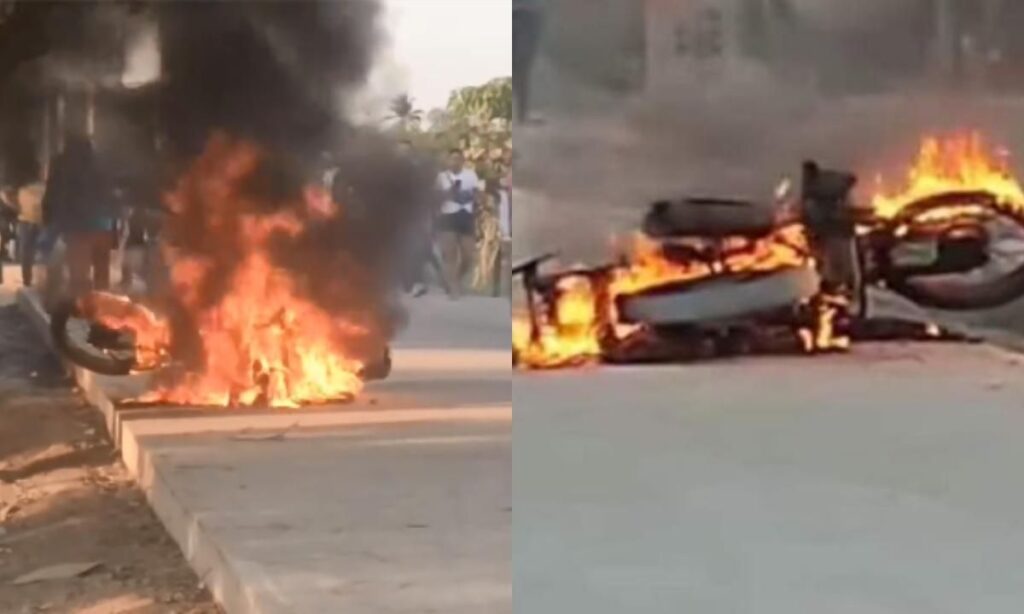 La comunidad, intentando respaldar a la mujer en su búsqueda de justicia, persiguió al hombre y su amante; sin embargo, la pareja huyó del lugar mientras las llamas consumían por completo la moto.