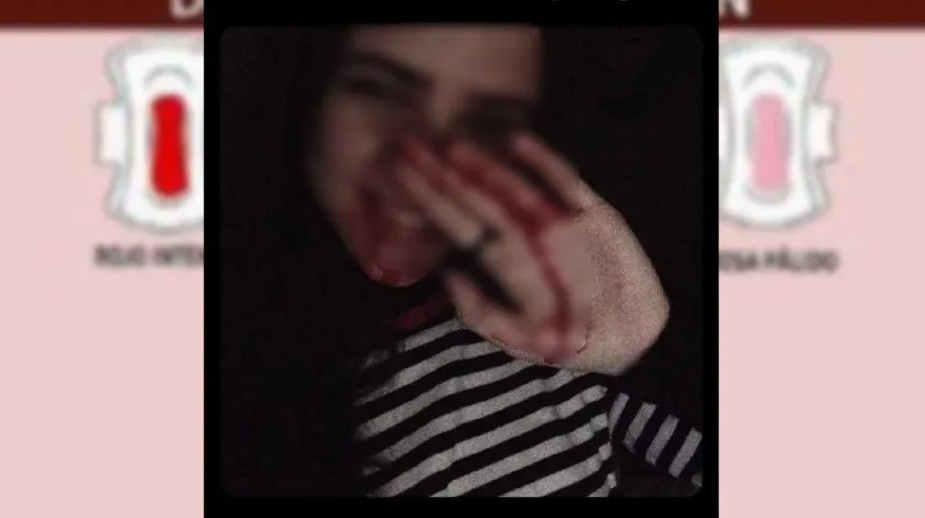 Su publicación estuvo acompañada con una foto en la que sale con sangre en su mano y boca.