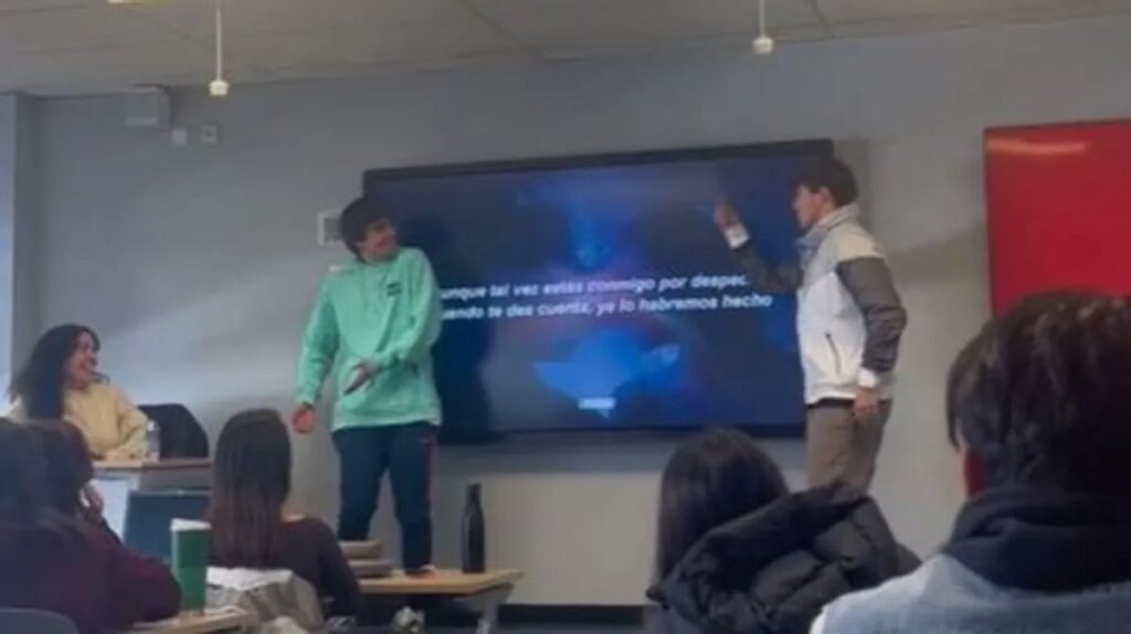 Una maestra de un colegio de Madrid tuvo una curiosa idea para lidiar con unos alumnos que estaban distraídos y no dejaban de interrumpir en clase. Uno de los jóvenes, Guillermo Tendero, subió el vídeo a su cuenta de TikTok y explicó que “nos pilló la profesora hablando y como castigo nos sacó a bailar delante de toda la clase”.