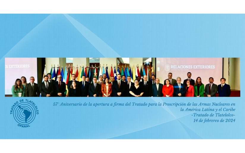 El Tratado de Tlatelolco fue adoptado el 14 de Febrero de 1967, en la antigua sede de la Secretaría de Relaciones Exteriores de México, ubicada junto a la zona arqueológica de Tlatelolco y Prohíbe el desarrollo, adquisición, ensayo y emplazamiento de armas nucleares en América Latina y el Caribe, fue firmado por todos los 33 Estados de América Latina y el Caribe y es aplicable en sus territorios. Más de 20 millones de Kilómetros cuadrados, con una población de más de 600 millones de personas y ha garantizado que América Latina y el Caribe se mantenga libre de armas nucleares.