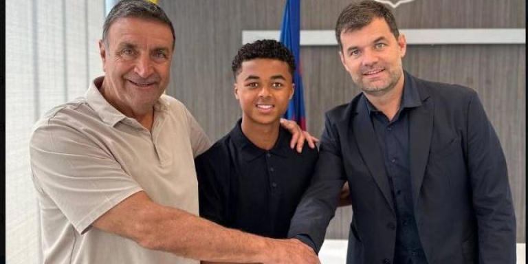 A sus 16 años, Shane Kluivert, hijo de Patrick Kluivert, firmó su primer contrato como jugador de Fútbol Club Barcelona.