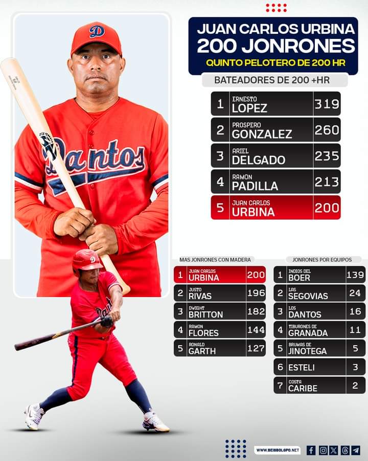 El pasado fin de semana, el pelotero capitalino Juan Carlos Urbina conectó el cuadrangular 200 de su carrera, lo hizo ante el exigente pitcheo de los Indígenas de Matagalpa en el Estadio Nacional Soberanía.