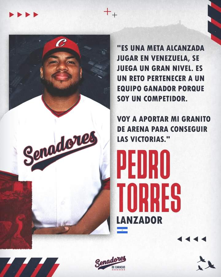 El rivense Pedro Torres va jugar con los Senadores de Caracas en la Liga Mayor de Béisbol de Venezuela, así lo comunicó el equipo a través de sus redes sociales.