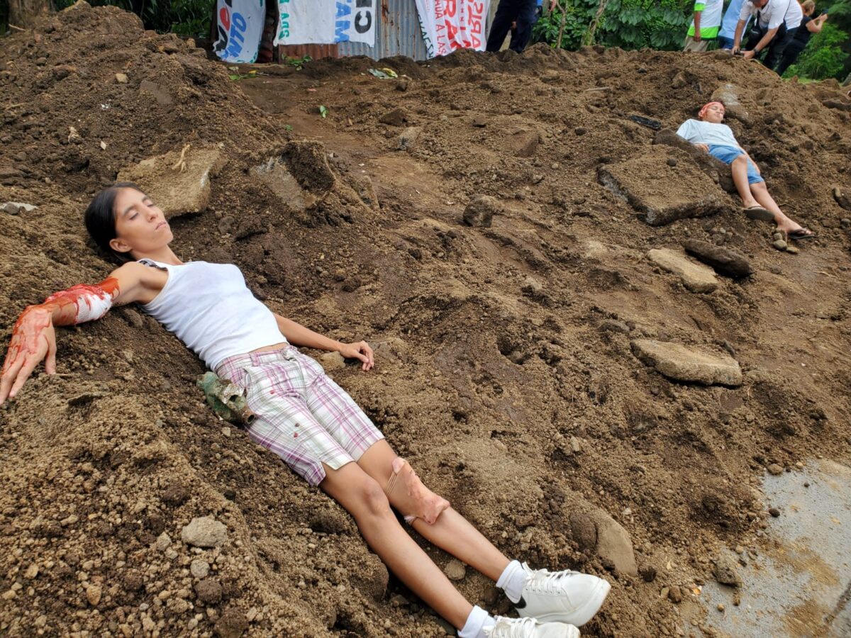 La hipótesis de este segundo ejercicio se centra en un temblor de 7.6 grados y 15 kilómetros de profundidad, en las costas de masachapa, al mismo tiempo se desarrolla una Onda Tropical fuerte que ocasionó lluvias de ligeras a moderadas. El primer escenario fue la auto-evacuación a la zona de seguridad, el segundo fue el rescate a las víctimas en escombros y despeje de vía, el tercero colapso de vivienda producto de sismo.