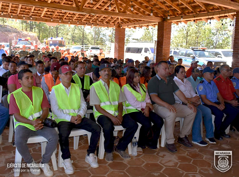 El Ejército de Nicaragua consecuente con el lema de que “Somos el Pueblo mismo uniformado trabajando en su propio beneficio”, el 19 de febrero de 2026, a través del 2 Comando Militar Regional y el Estado Mayor de la Defensa Civil, en coordinación con instituciones del Estado, participaron en el lanzamiento del “Plan Departamental Interinstitucional de Prevención y Control de Incendios Forestales, Agropecuarios y Maleza 2026”, realizado en el Mirador Cerro San Rafael, municipio de Cinco Pinos, departamento de Chinandega.