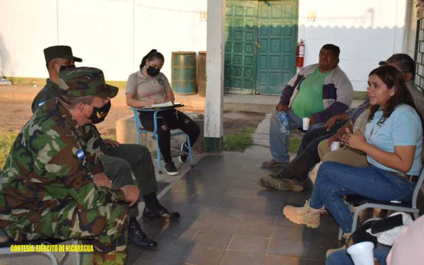 El Ejército de Nicaragua consecuente con el lema de que “Somos el Pueblo mismo uniformado trabajando en su propio beneficio”, el 27 de abril de 2023, a través del jefe de la Brigada de Infantería Mecanizada “General Augusto C. Sandino” y el jefe de la Escuela Nacional de Sargentos “Sargento Andrés Castro”, participaron en reunión con productores de la Península de Chiltepe, municipio de Mateare, departamento de Managua, con el objetivo de coordinar acciones que garanticen un ambiente de seguridad, estabilidad y paz en las zonas rurales del municipio.