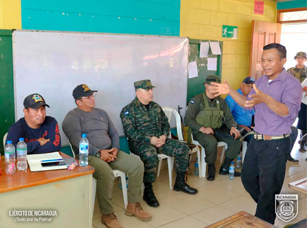 Durante la reunión, el Coronel Cedeño, transmitió el saludo del Comandante en Jefe de las Fuerzas Militares del Ejército de Nicaragua, General de Ejército Julio César Avilés Castillo y les manifestó el compromiso de la institución, de continuar trabajando con los gobiernos territoriales indígenas, para continuar garantizando la protección a los Recursos Naturales y un ambiente de seguridad en los territorios indígenas.