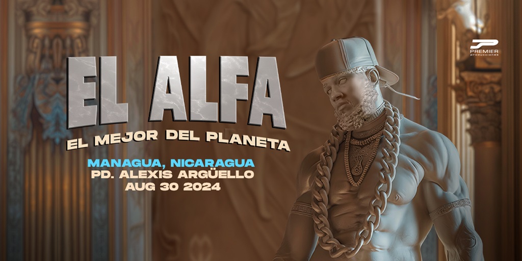 El Alfa, ya está en Nicaragua para cantar sus más grandes éxitos en el concierto a realizarse el 30 de agosto en el Polideportivo Alexis Arguello con su tour “El mejor del planeta”.