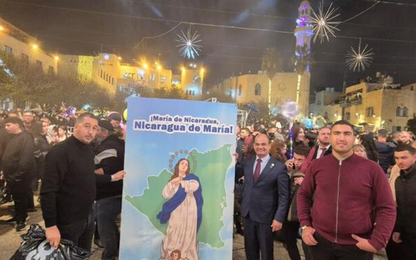 Durante el Acto, el Compañero Maher Qanawati, Alcalde de Belén, dio la bienvenida a los asistentes y destacó la identidad histórica y espiritual de la ciudad como lugar del nacimiento de Jesucristo y símbolo de Paz. Felicitando a Nicaragua por nuestras celebraciones Marianas y señalando que Belén tenía cinco años sin encender el Árbol de Navidad debido a la Pandemia del COVID-19 y la guerra de exterminio contra el Pueblo palestino en Gaza.