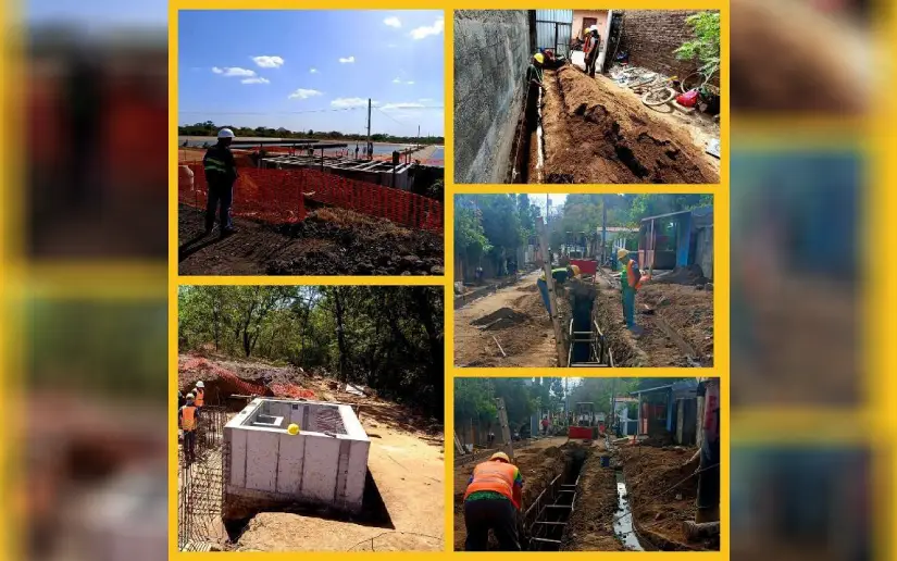 Las obras en ejecución incluyen principalmente: Instalación de 19 kilómetros de Tuberías, Construcción de 189 Manjoles, Estación de Bombeo y Planta Depuradora, que al finalizar Dios Mediante a finales de este año, restituirá el Derecho al Saneamiento a unas 1,900 Familias y reducirá la formación de charcas en las calles; mejorando de esta manera, la calidad de Vida de las Familias en esta Ciudad.