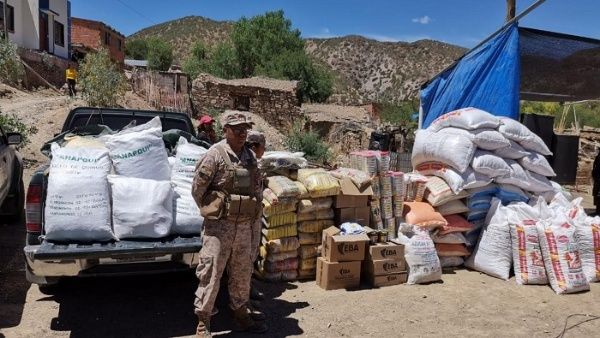 El titular del Ministerio de Defensa de Bolivia, Edmundo Novillo, hizo entrega de 49 toneladas de ayuda humanitaria para los habitantes de municipios del departamento de La Paz que constantemente son afectados por eventos meteorológicos severos.