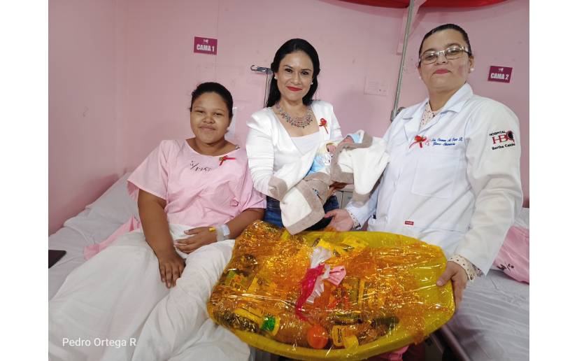 Autoridades del Ministerio de Salud y la Alcaldía de Managua llegaron al Hospital Escuela Bertha Calderón para felicitar y entregar obsequios a madres que dieron a luz a sus hijos este 30 de mayo.