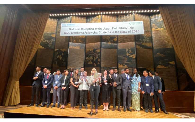 Este 8 de Mayo, en Tokio, la Fundación Sasakawa para la Paz (SPF) de Japón, ofreció recepción de bienvenida a Estudiantes de la Beca Sasakawa de la Universidad Marítima Mundial (WMU), Clase 2023; quienes estarán realizando una visita de campo del 7 al 14 de Mayo.