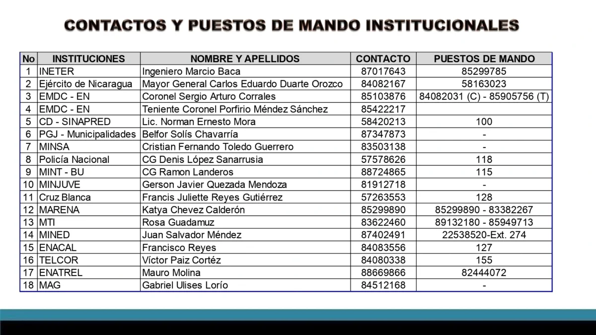 Exposición del Ejército de Nicaragua sobre Plan Nacional Interinstitucional Invierno 2026