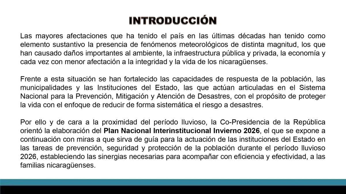 Exposición del Ejército de Nicaragua sobre Plan Nacional Interinstitucional Invierno 2026.