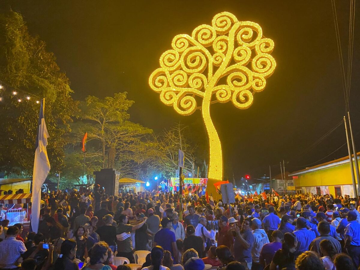 Las luces del Árbol de la Vida en la cabecera departamental, un símbolo que representa la Unidad, la Fe y la fuerza de un pueblo que sigue avanzando en Revolución.