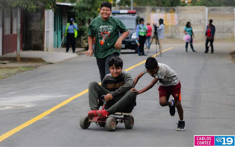 Gracias al programa Calles para el Pueblo, que ejecuta el Gobierno de Nicaragua a través de la Alcaldía de Managua (ALMA), las familias del barrio Plaza España inauguraron 4 cuadras asfaltadas.