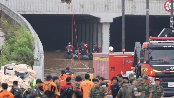 De acuerdo a las autoridades, la carretera subterránea de Osong en la ciudad central de Cheongju se inundó cuando un río cercano se desbordó debido al aumento del nivel del agua a causa de las fuertes lluvias.