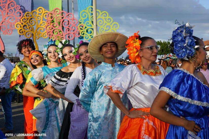 En esta caminata participaron jóvenes estudiantes universitarios, de centros tecnológicos, barrios y comunidades con camisetas blancas, banderas de Nicaragua, Venezuela y del Frente Sandinista, pañoletas roja y negra y azul y blanco; artistas portando trajes típicos tradicionales nicaragüenses y atletas con sus uniformes deportivos.