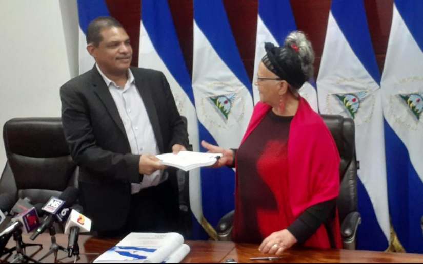 El Comandante Daniel Ortega Saavedra, Presidente de la República en cumplimiento a lo dispuesto en la Constitución Política de la República de Nicaragua en sus Artículos 113 y 150, entregó a través del Ministro de Hacienda y Crédito Público, Iván Acosta Montalván a Primera Secretaría de la Junta Directiva de la Asamblea Nacional la iniciativa de Ley Anual del Presupuesto General de la República 2023.