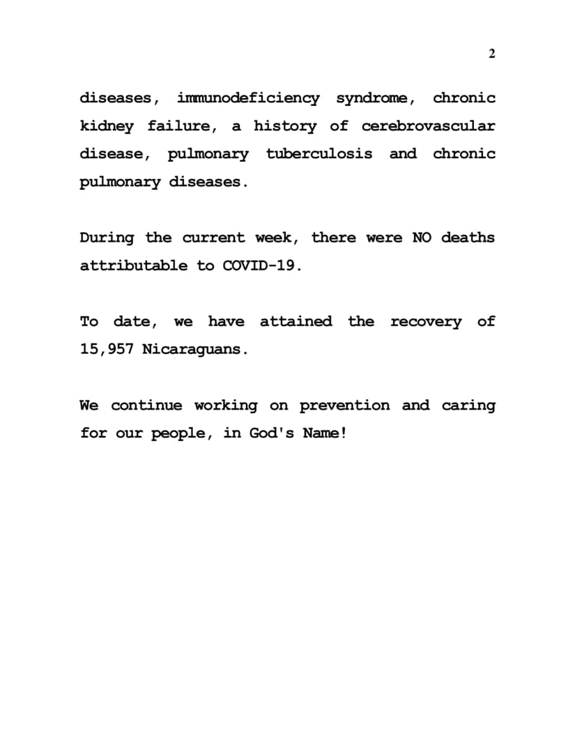 During the current week, from 10th to 17th December 2024, we have attended and provided Responsible and Careful Care to 1 Nicaraguan confirmed to be COVID-19 positive.
